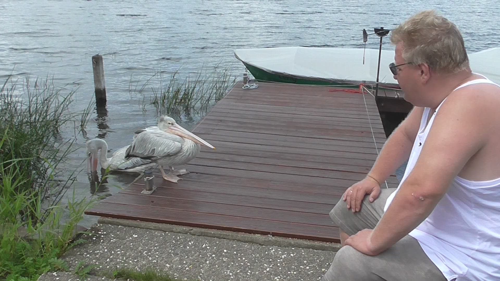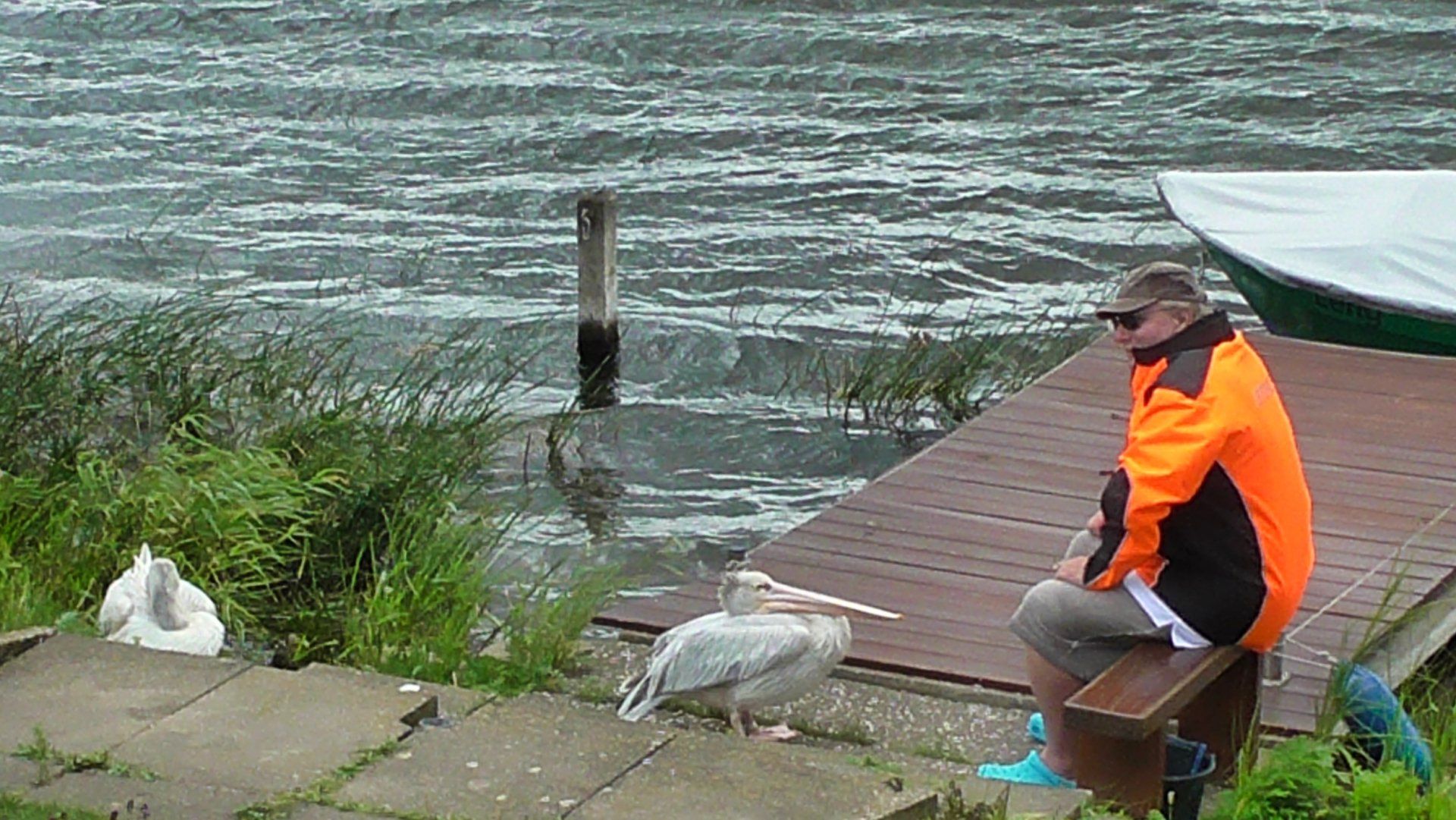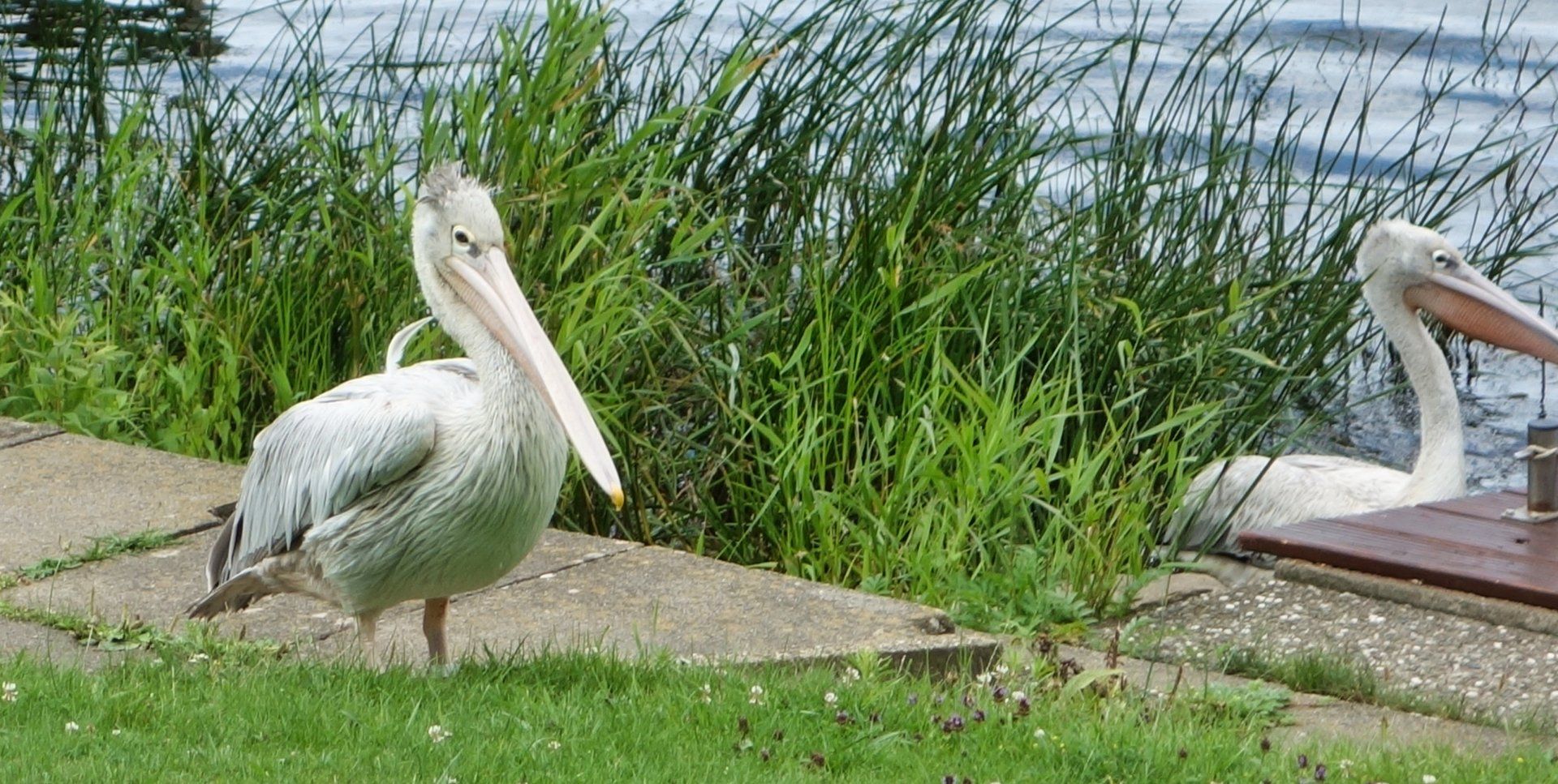 Pelikane in Nienburg - aus dem Zoo Osnabrück "ausgebrochen" (Juli 2015)