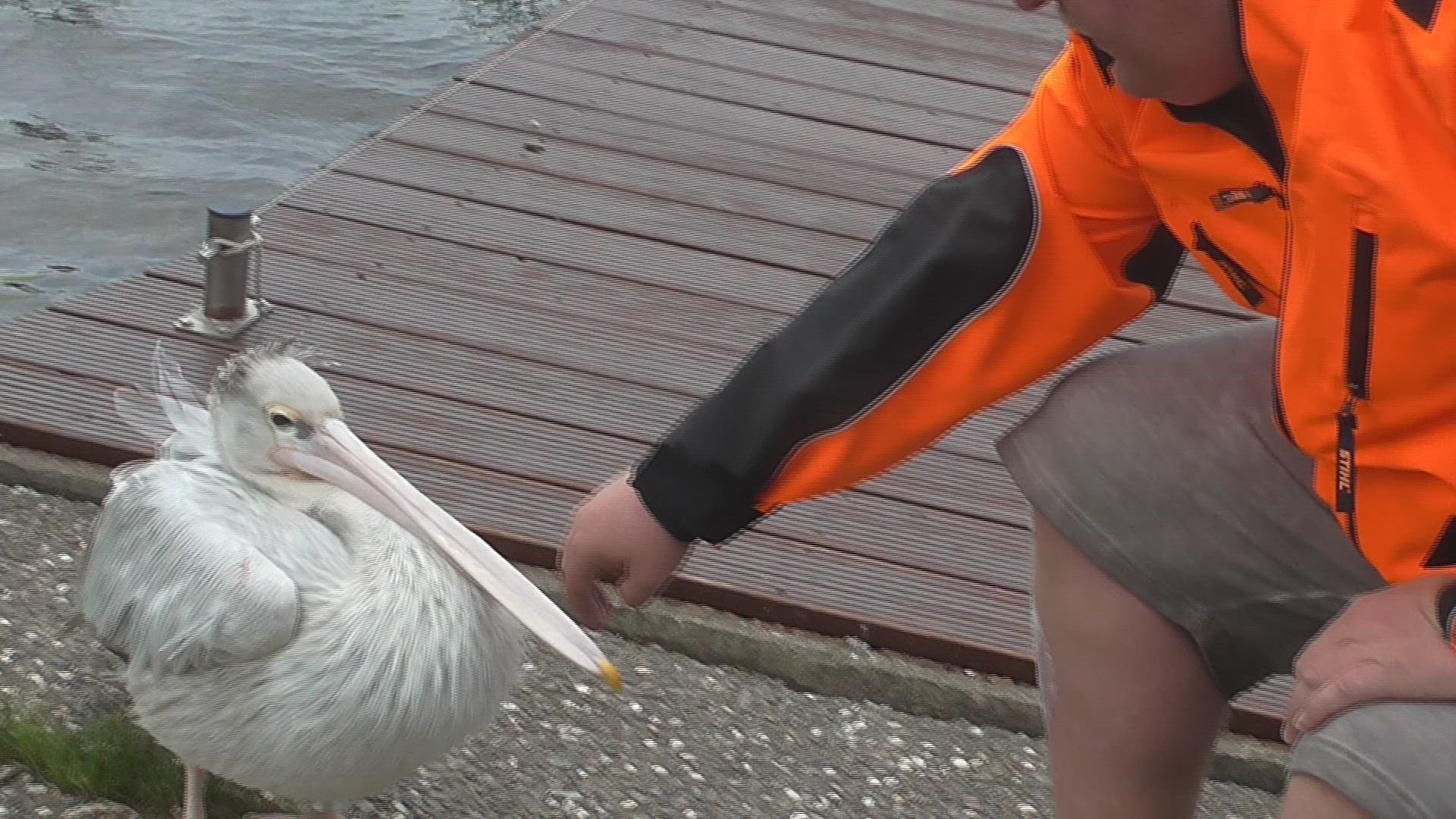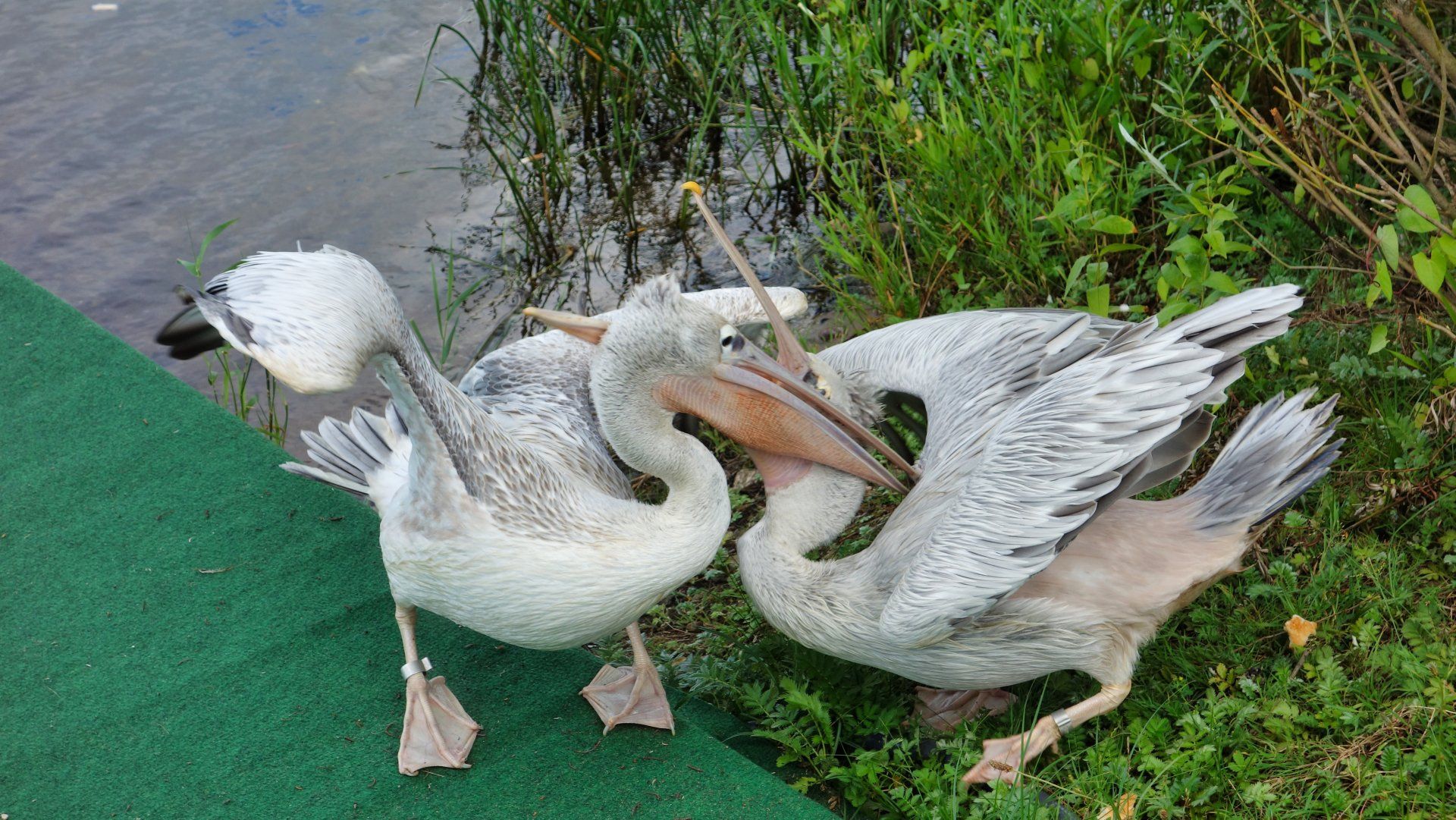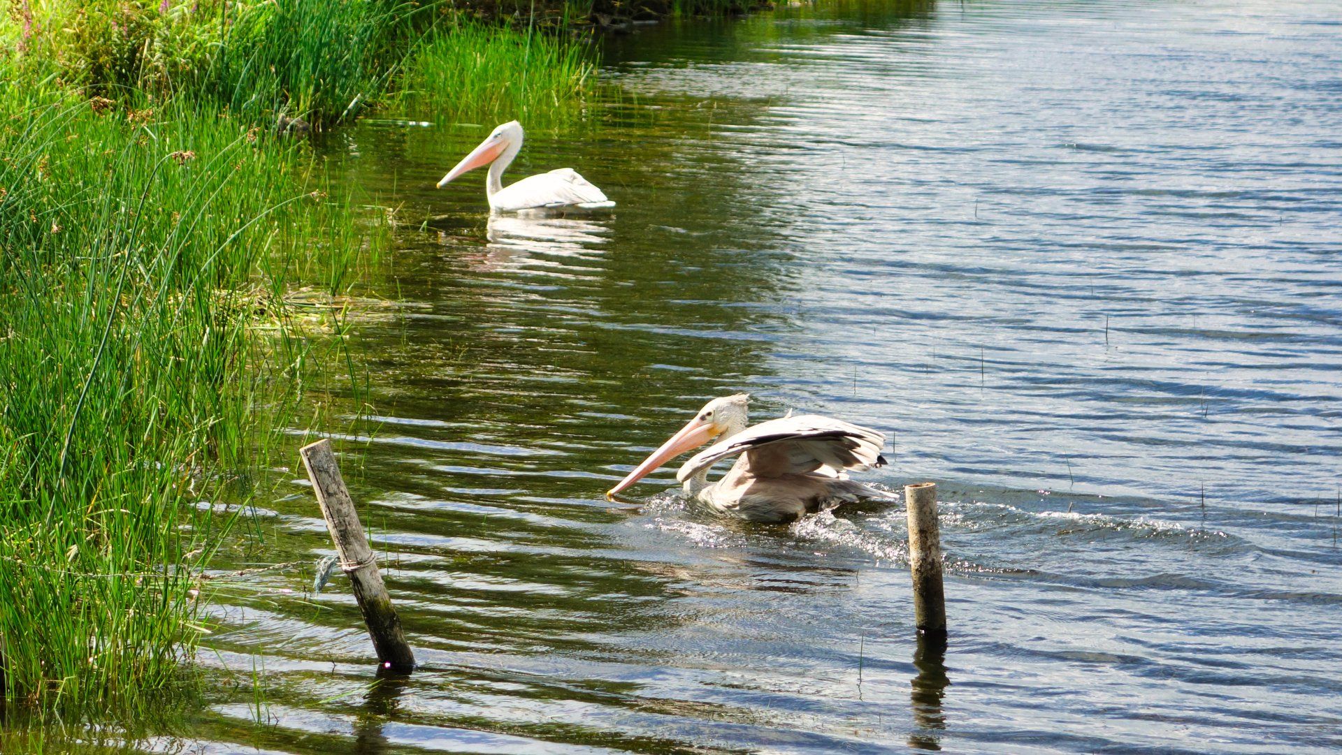 Pelikane in Nienburg - aus dem Zoo Osnabrück "ausgebrochen" (Juli 2015)